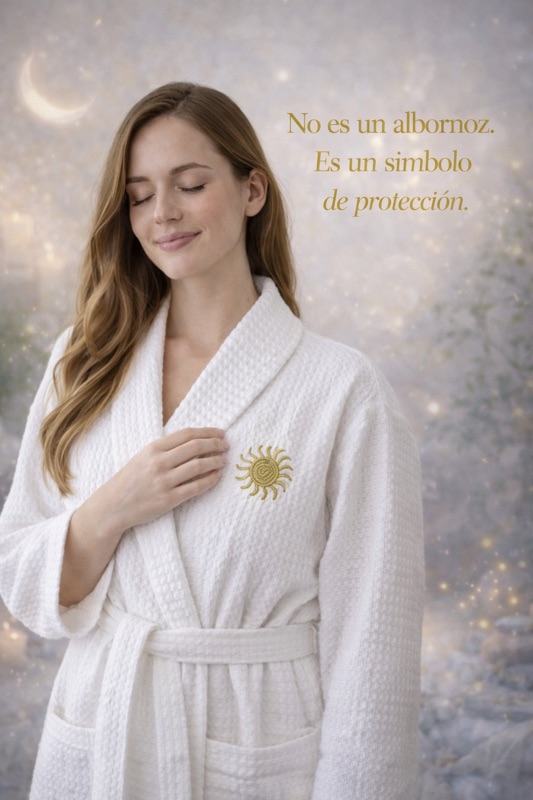 Sí. Los símbolos conectan con nuestras emociones. Nos aportan calma, seguridad y presencia. Vestir este albornoz es transformar un gesto cotidiano en un momento de pausa y autocuidado.